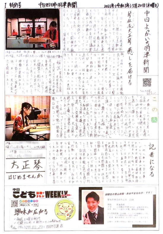 いつか記者になった青山さんにまた取材をしてもらえるよう私もこれからずっと大正琴とともに歩み続けたいと思います。