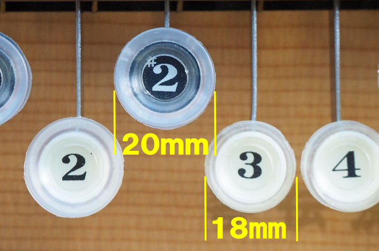 ソプラノ・アルト大正琴は♯2より低いボタン、テナー大正琴は♯6より低いボタンに取り付けられます。