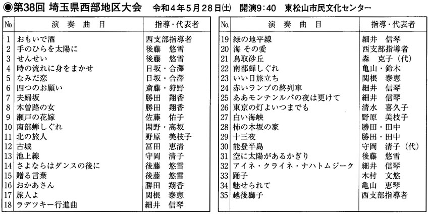 5月28日(土)に東松山市の東松山市民文化センターで「第38回埼玉県西部地区大会」が開催されます。