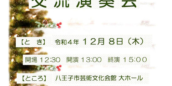 12月8日(木)に八王子市の八王子市芸術文化会館で「関東本部グループ交流演奏会」が開催されます。