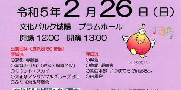 2月26日(日)に京都府城陽市の文化パルク城陽で第9回城陽市国民文化祭記念事業「大正琴の祭典in城陽」が開催されます。