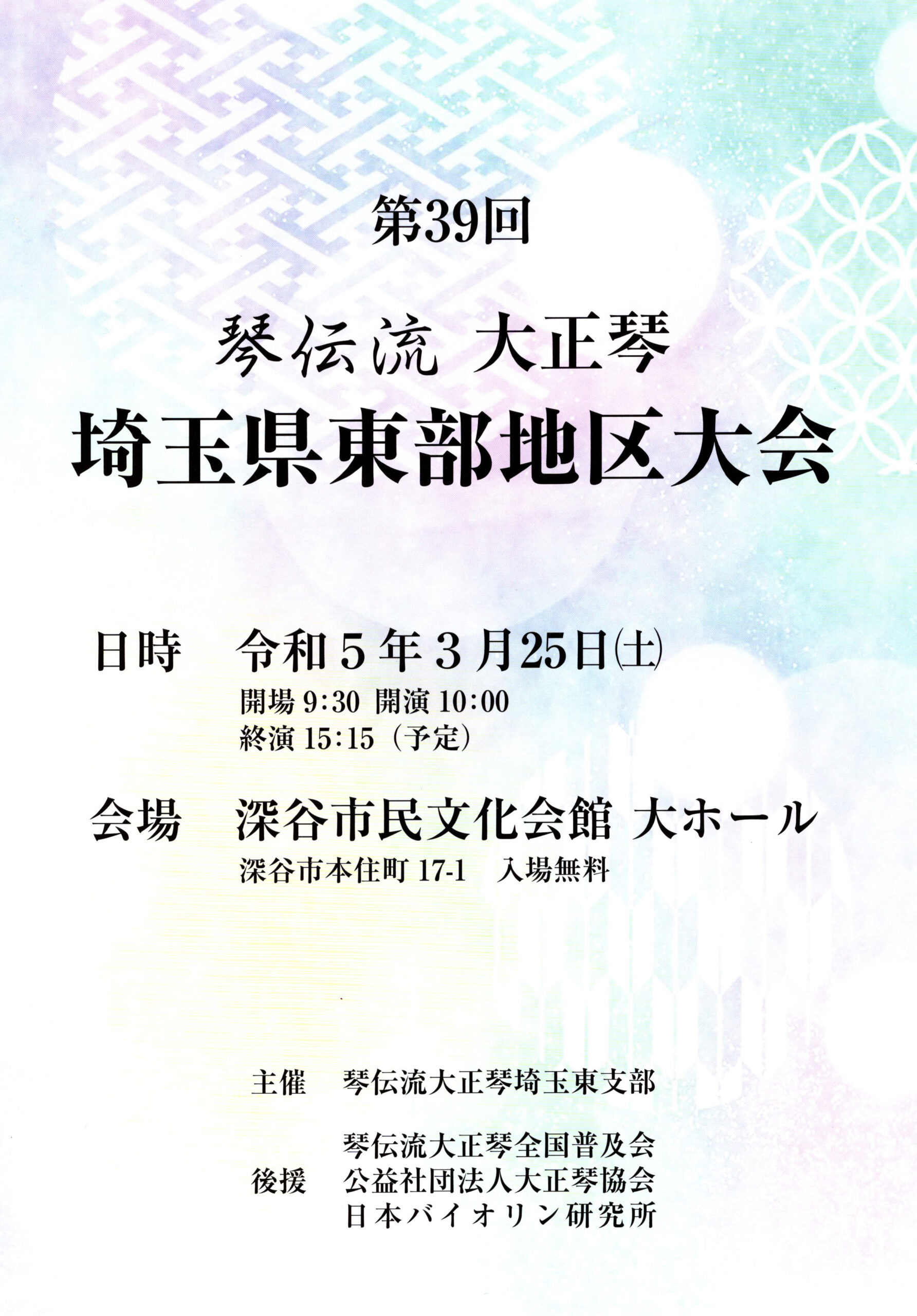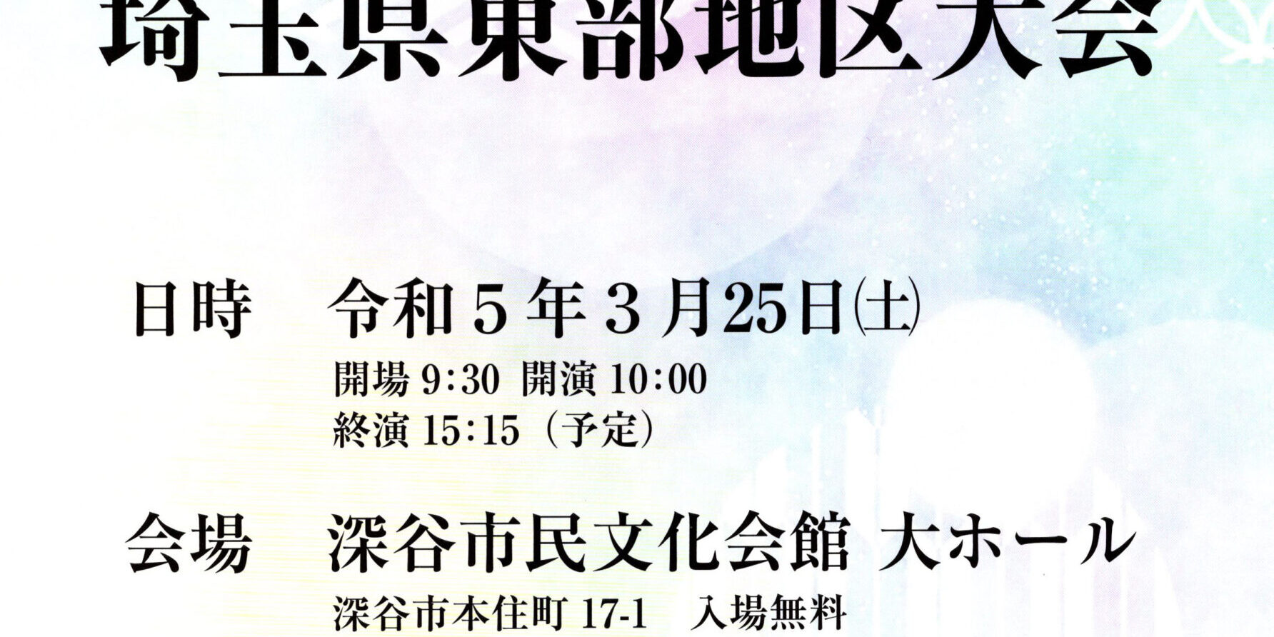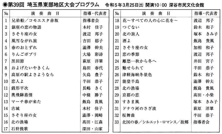 3月25日(土)に深谷市の深谷市民文化会館で「第39回埼玉県東部地区大会」が開催されます。