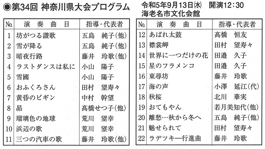 9月13日(水)に海老名市の海老名市文化会館で「第34回神奈川県大会」が開催されます。