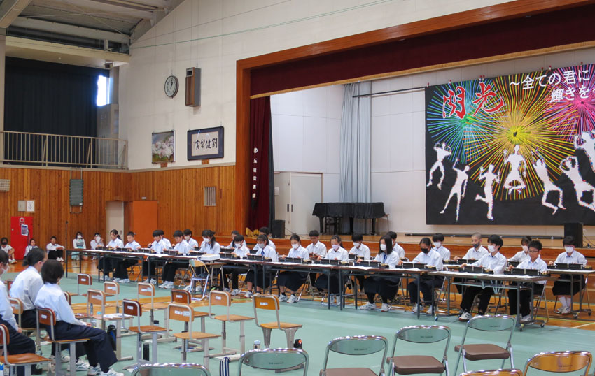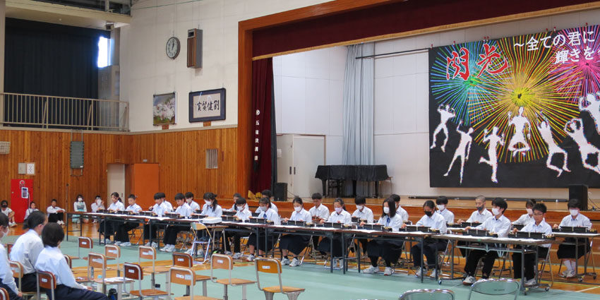 9月29日(金)に長野県伊那市の西箕輪中学校文化祭「第56回紅葉祭」で1年東組が総合学習の成果として大正琴の演奏を披露しました。