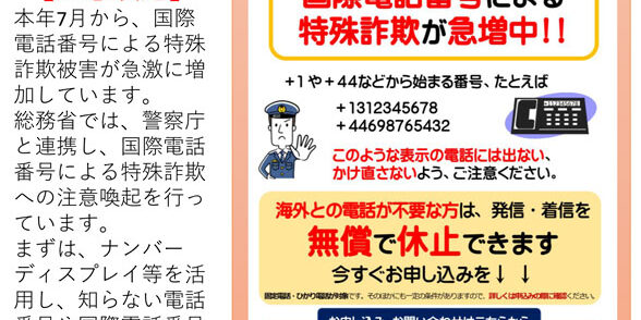 今年の夏から国際電話番号の特殊詐欺の被害が増えているようです。