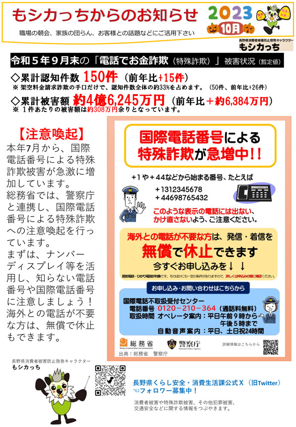 長野県の特殊詐欺被害防止認証団体の琴伝流からお知らせです。