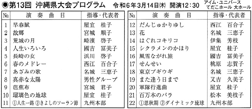 3月14日(木)に浦添市のアイム・ユニバース てだこホールで「第13回沖縄県大会」が開催されます。