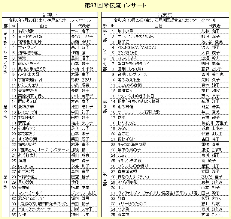 令和6年7月20日(土)に神戸文化ホール、10月25日(金)に江戸川区総合文化センターで開催される「第37回琴伝流コンサート」の出場グループが決まりました。