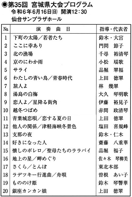 6月16日(日)に仙台市の仙台サンプラザで「第35回宮城県大会」が開催されます。