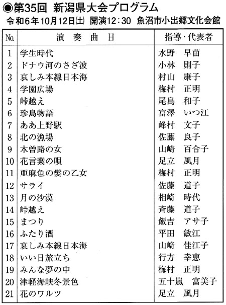 10月12日(土)に魚沼市の小出郷文化会館で「第35回新潟県大会」が開催されます。