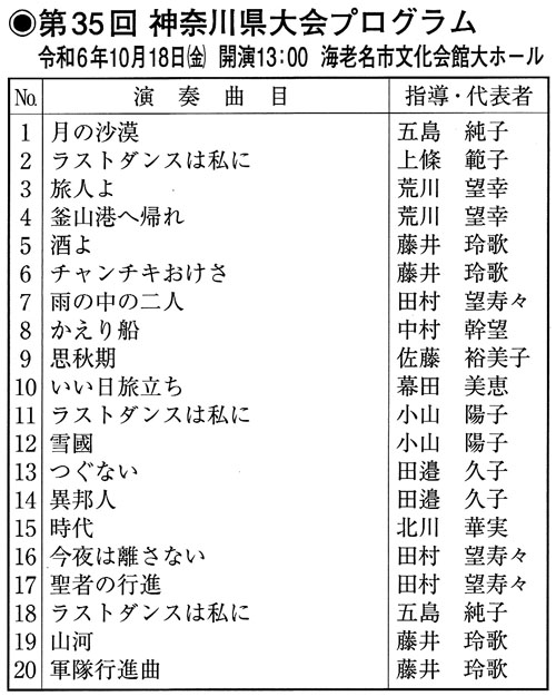 10月18日(金)に海老名市の海老名市文化会館で「第35回神奈川県大会」が開催されます。