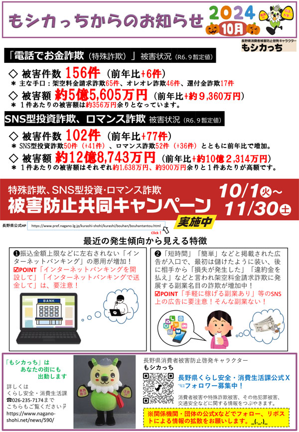 長野県の特殊詐欺被害防止認証団体の琴伝流からお知らせです。