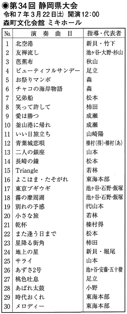 3月22日(土)に森町の森町文化会館で「第34回静岡県大会」が開催されます。