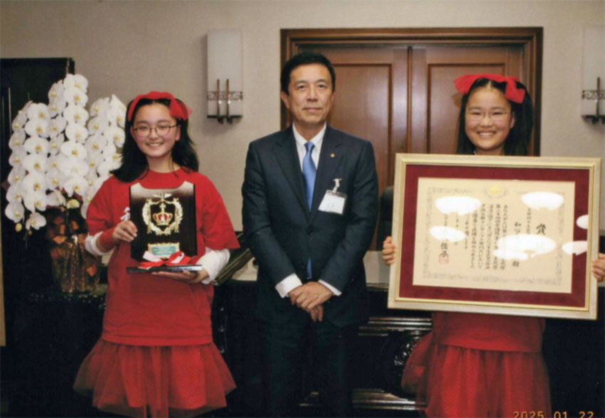 和心会ジュニアが昨年の国民文化祭で行われた「全国子供大正琴コンクール・アンサンブル部門A部門」で文部科学大臣賞を受賞したことをご報告させていただきます。
