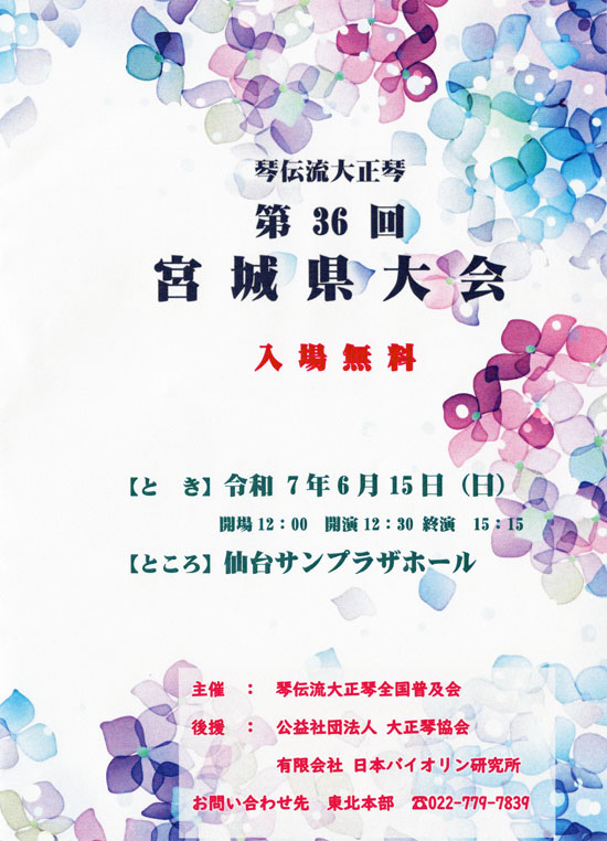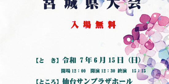 6月15日(日)に仙台市の仙台サンプラザホールで「第36回宮城県大会」が開催されます。