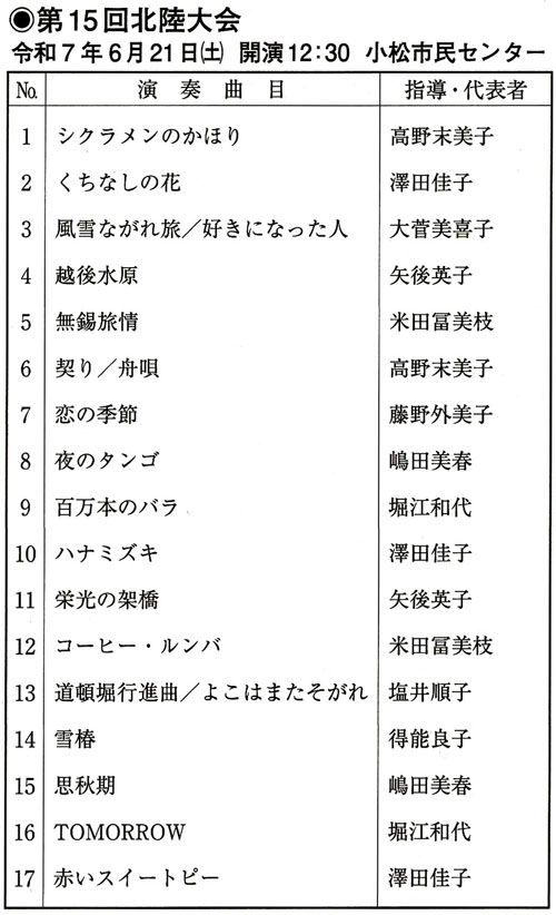 6月21日(土)に小松市の小松市民センターで「第15回北陸大会」が開催されます。