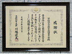 この大正琴として唯一出展を続けた琴伝流の取組みに対し、文部科学省から感謝状もいただいています。