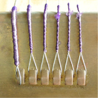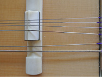 大正琴の弦を引っかけるテールピースにも琴伝流のこだわりがあります。一般的なメーカーのテールピースは、横一列に弦を引っかけるタイプです。