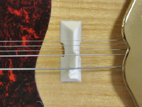 このタイプ方法だとフック部分の幅が広がり、弦を張ると下駒の右側が広がってしまいます。この状態で演奏すると、下駒の左側をピックが往復するため、下駒の上で弦が引っ張られている方向に滑りやすくなります。こうなると綺麗なトレモロや弦を使い分けて繊細に演奏することはできません。